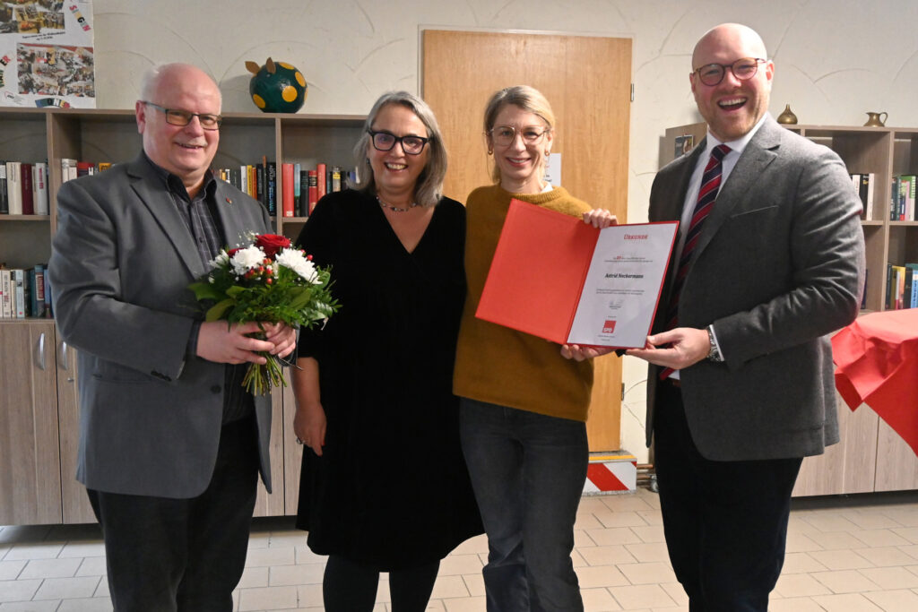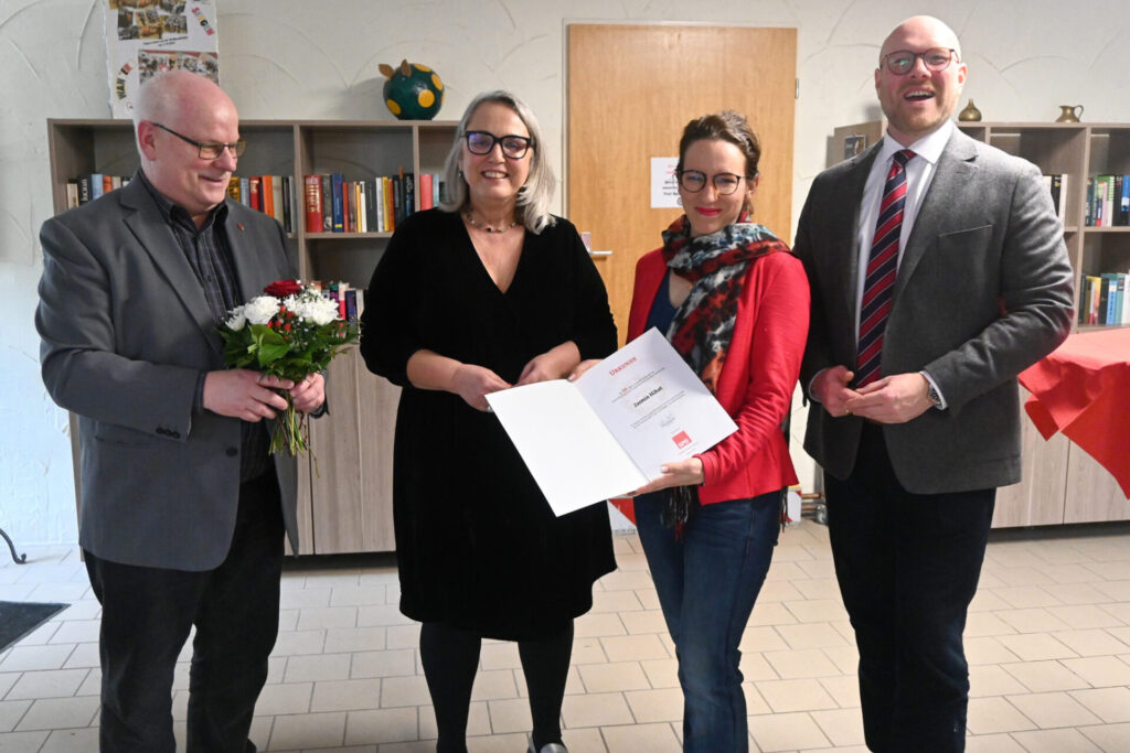 Im Zuge der Veranstaltung hat der SPD-Ortsverein Hombruch-Süd hat langjährige Mitglieder geehrt. Für 40 Jahre Mitgliedschaft wurden Beatrix Wild und Thomas Schneider ausgezeichnet, Johannes Hanika für 25 Jahre, Astrid Neckermann für 20 Jahre und Jasmin Hihal für zehn Jahre Engagement. Die Ehrungen übernahmen der Bundestagsabgeordnete Jens Peick und die Landtagsabgeordnete Anja Butschkau. Im Anschluss wurde gemeinsam gefeiert.